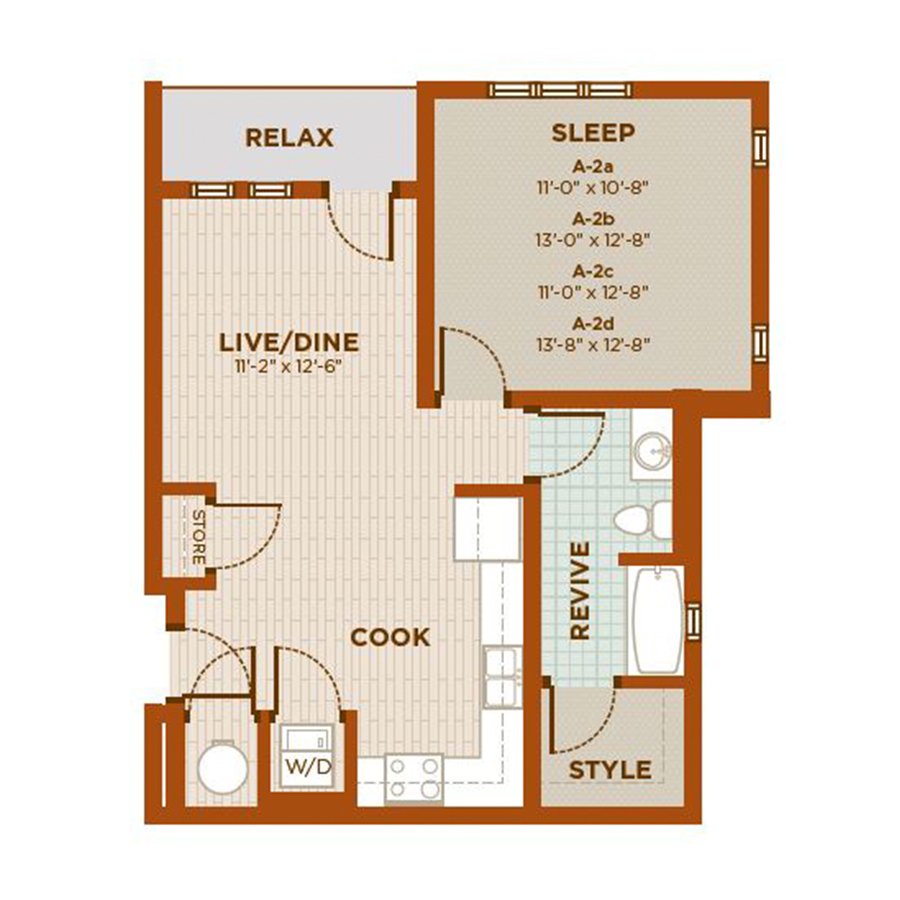 Choose between fifteen unique floor plans with square footage, affordability and sustainability to fit multiple lifestyles. Our studios offer an inclusive space with designated kitchen, bedroom and living areas, plus spacious storage and private patios. The large one and two bedrooms have everything you could think of and then some. Find your perfect apartment by searching below.