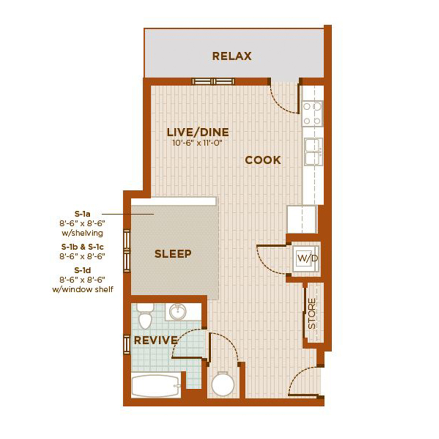 Studio, One & Two Bedroom Floor Plans