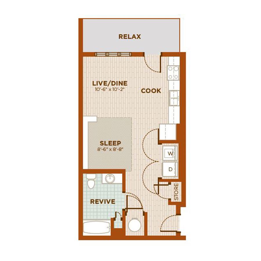 Choose between fifteen unique floor plans with square footage, affordability and sustainability to fit multiple lifestyles. Our studios offer an inclusive space with designated kitchen, bedroom and living areas, plus spacious storage and private patios. The large one and two bedrooms have everything you could think of and then some. Find your perfect apartment by searching below.
